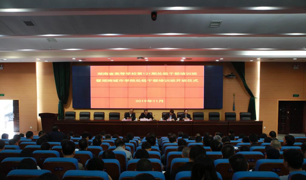 (本网讯)2019年11月7日下午,湖南省高等学校第121期处级干部培训班暨beat365中国唯一官网处级干部培训班开班仪式在beat365官网图书馆报告厅举行。本次培训班由省委教育工委党校主办,beat365中国唯一官网承办。省教育厅党组成员、省委教育工委副书记、省委教育工委党校校长王建华,省委教育工委党校常务副校长刘国华,在家的校领导出席,第121期处级干部培训班参训学员、二级党组织书记、副书记、基层党支部书记、辅导员以及党务部门全体人员参加。开班仪式由党委副书记、校长李建奇主持。
