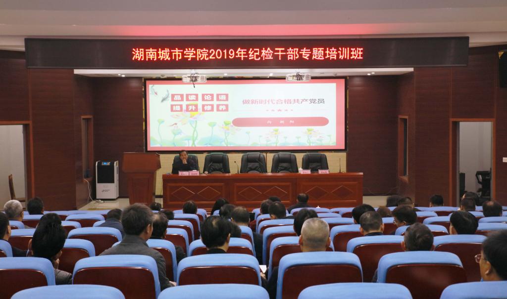 (本网讯)2019年12月14日,为加强学校专兼职纪检队伍建设,提升适应新时代高校纪检监察工作的专业精神和专业能力,增强依纪依法履职本领,beat365官网在建规楼121报告厅举办了纪检监察干部培训。省纪委省监委驻省教育厅纪检监察组正处级纪检监察员、二级调研员向朝阳应邀来校,作了题为“品读论语,提升修养,做新时代合格共产党员”的专题讲座。省委教育工委党校第121期处级干部培训班学员,各二级党委(党总支)纪检委员、党风校风观察站成员,纪检监察处全体干部参加了本次培训。