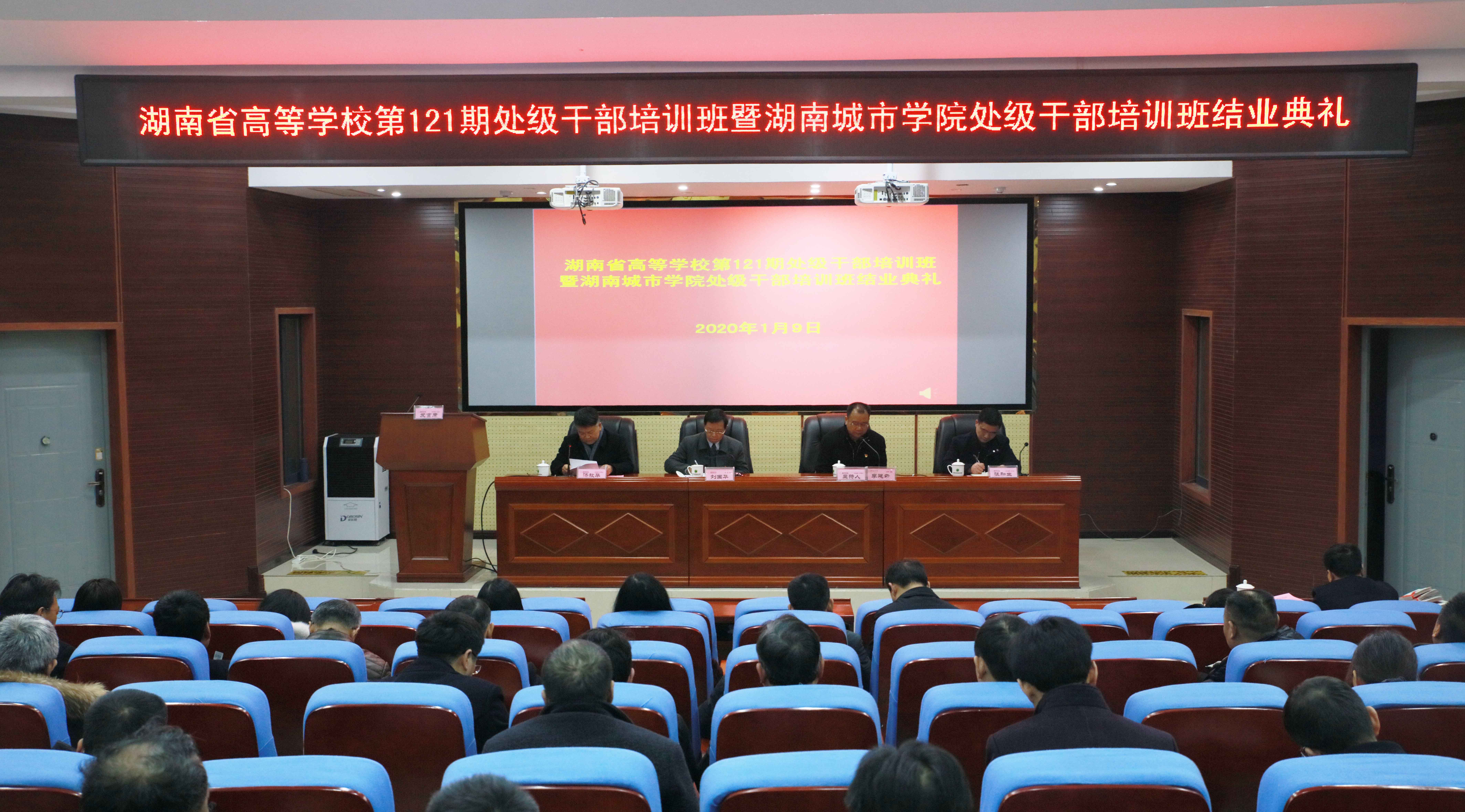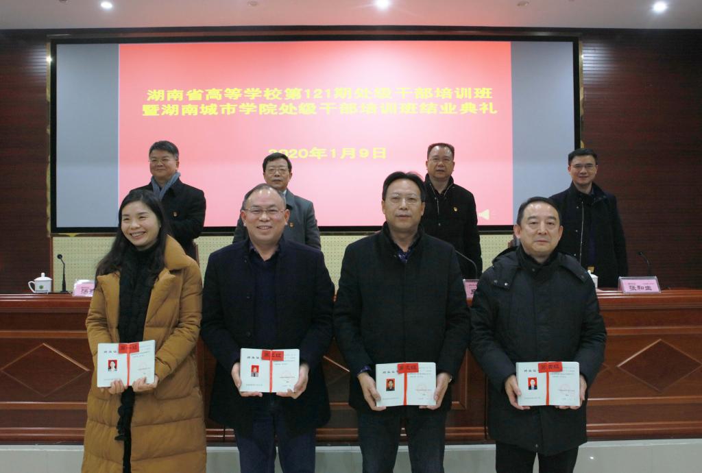 (本网讯)2019年1月9日,湖南省高等学校第121期处级干部培训班暨beat365中国唯一官网处级干部培训班结业典礼在beat365官网图书馆报告厅举行。湖南省高校干部培训中心主任、书记,省委教育工委党校常务副校长刘国华,省高校干部培训中心副主任张和生,党委副书记汤放华,党委委员、组织部长袁志成出席。结业典礼由党委副书记、校长李建奇主持。
