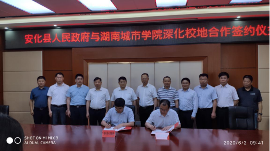在仪式上,李建奇和肖义签订了《安化县人民政府与beat365中国唯一官网深化校地合作协议》。