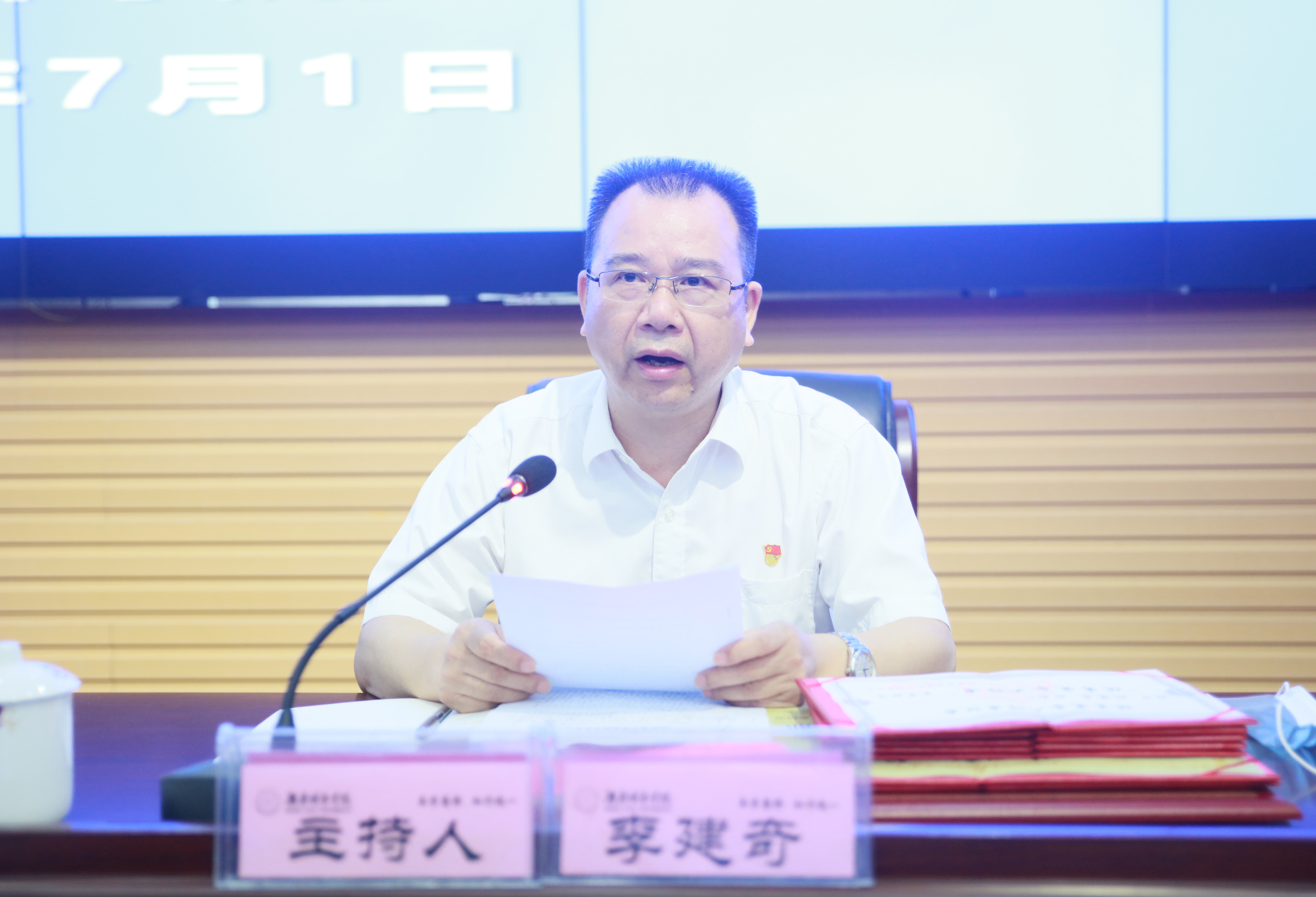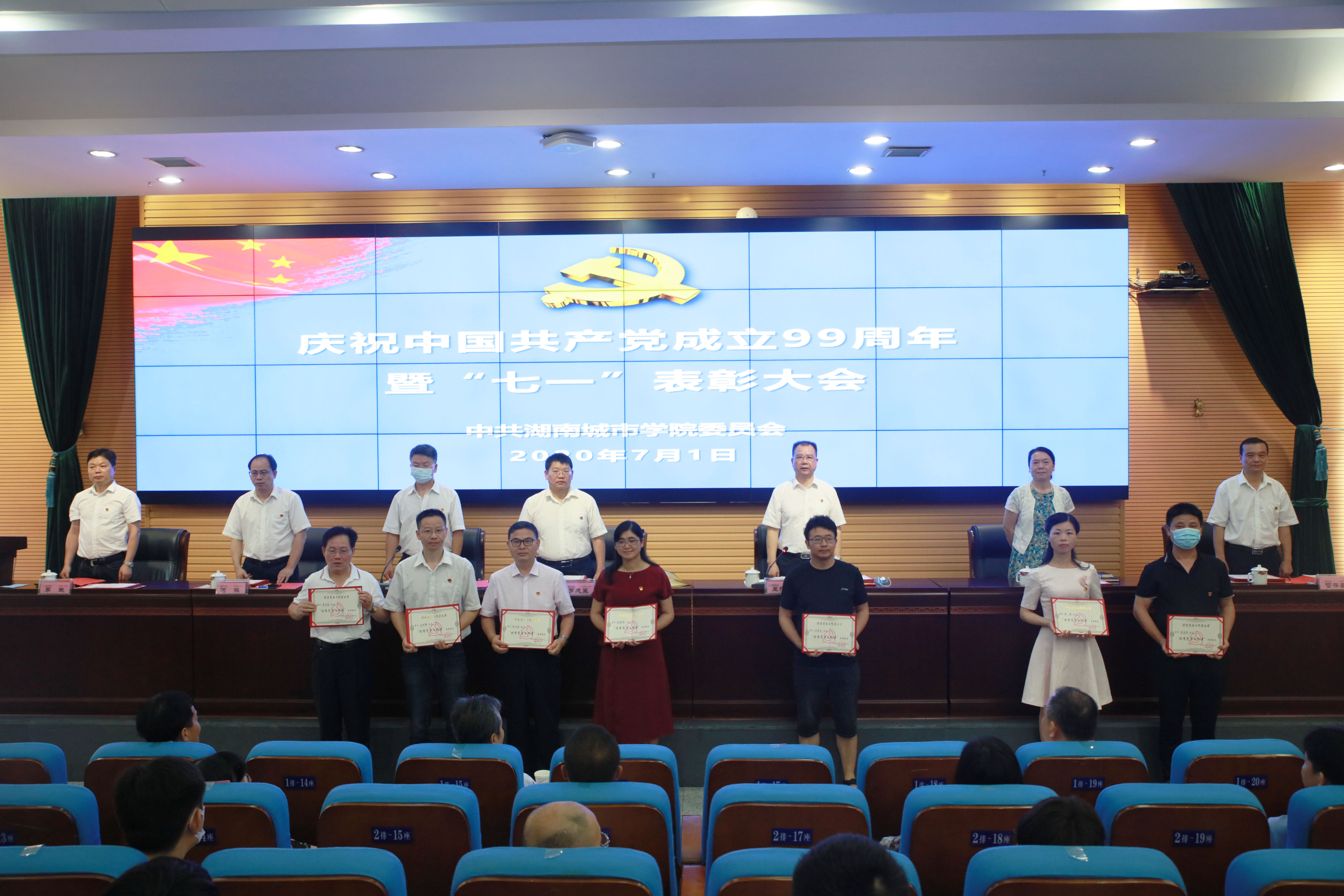 本网讯(通讯员 冷红)2020年7月1日上午,beat365中国唯一官网庆祝中国共产党成立99周年暨“七一”表彰大会在逸夫图书馆报告厅举行,在家的校领导、受表彰对象、副处级以上党员领导干部、党支部书记代表参加会议。会议由党委副书记、校长李建奇主持。