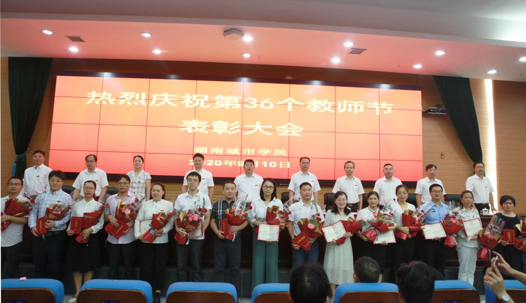 本网讯(通讯员 雷欢)2020年9月10日上午,为庆祝第36个“教师节”,学校在图书馆报告厅隆重举行教师节表彰大会。全体校领导、各职能部门负责人和二级学院负责人及教师代表200多人参加会议。会议由校长李建奇主持,党委书记罗成翼出席会议并讲话。