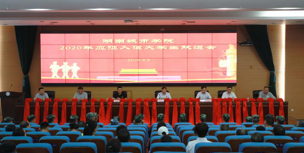 本网讯(通讯员 李波)2020年9月9日,2020年应征入伍大学生欢送会在学校图书馆报告厅举行。副校长谭献良,学校征兵工作领导小组成员,各二级学院党委(党总支)副书记、征兵专干,教导队全体集训教官,入伍大学生及其家属,共计200余人出席欢送会。党委武装部部长贺正宜主持会议。