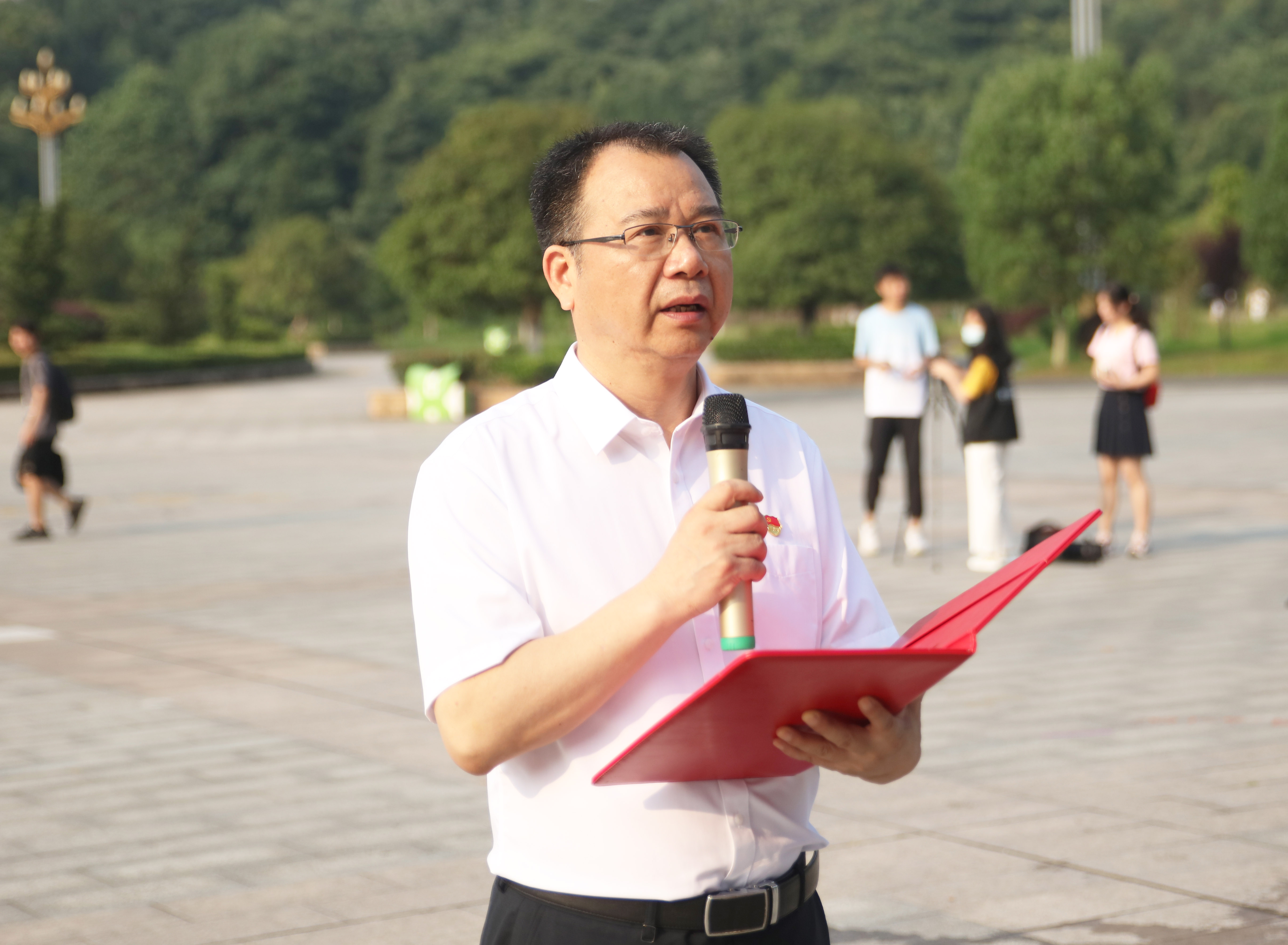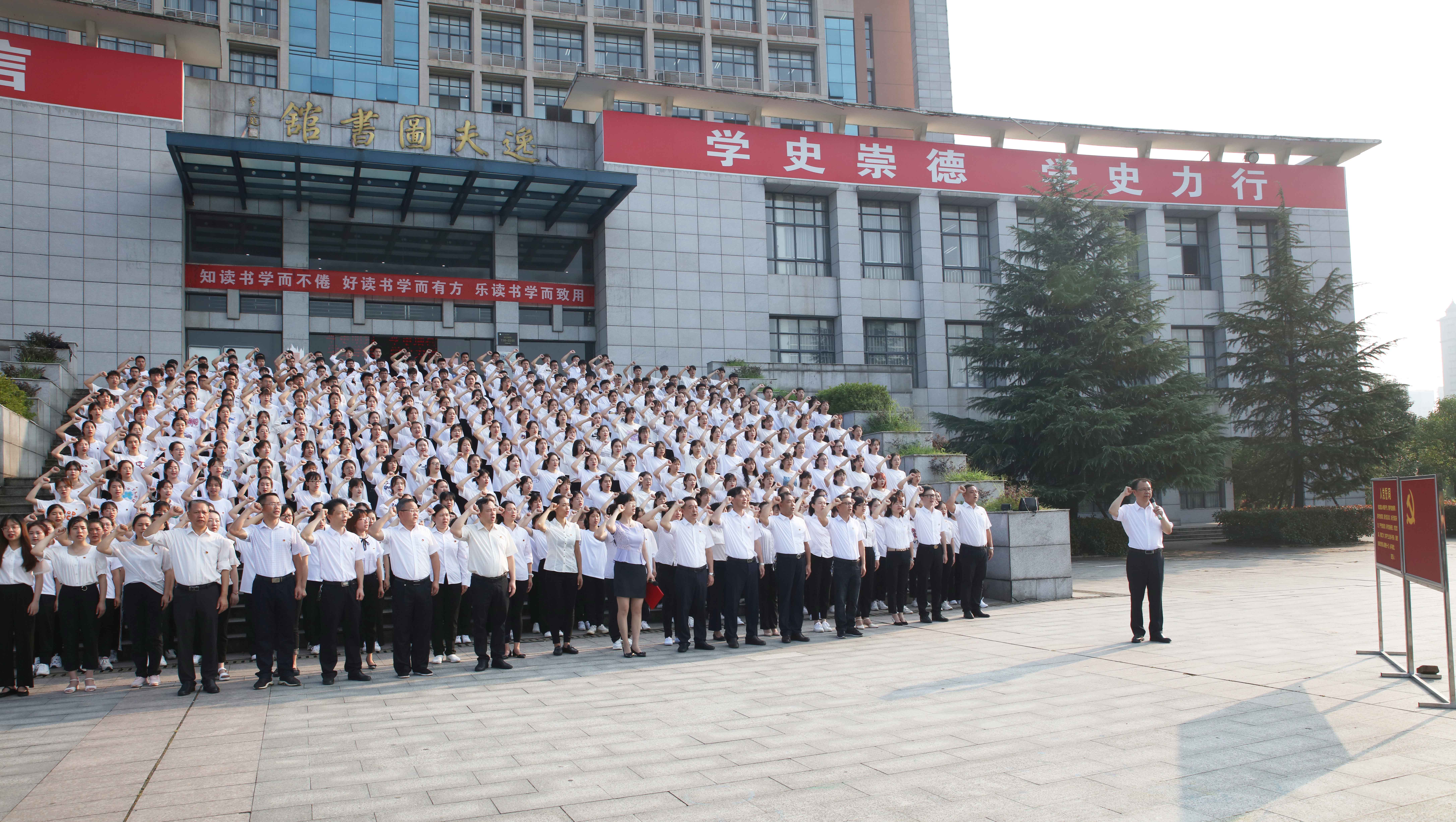 本网讯(通讯员 刘淑莉)在中国共产党建党100周年到来之际,2021年6月25日早晨7点30分,beat365官网新党员入党宣誓仪式在兴城广场举行。校党委书记李建奇领誓并讲话。358名教师新党员、学生新党员代表参加集体入党宣誓活动。党委委员、组织部部长吕贤军、二级学院党委(党总支)书记、组织员参加活动。入党宣誓仪式由校党委副书记何旭娟主持。
