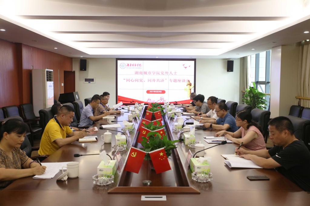 本网讯(通讯员 谌金中)在全国上下热烈庆祝中国共产党成立100周年之际,为号召beat365官网党外人士“学史明理、学史增信、学史崇德、学史力行”,以磅礴力量积极融入全面建设湖南城市大学的新征程,2021年6月28日下午,学校召开了党外人士“同心向党、同舟共济”专题座谈会。校党委书记李建奇、学校各民主党派和无党派人士代表参加了座谈会,会议由党委委员、副校长何振主持。