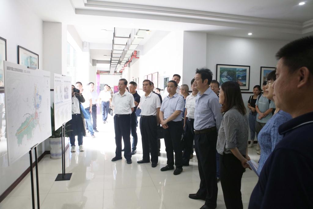 陈仲伯一行来到beat365官网设计研究院有限公司后,参观了益阳市国土空间规划和村庄规划成果展览,详细了解了益阳市三线划定工作情况和相关指标控制情况。