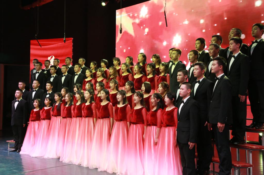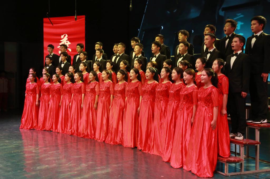 “都市的街巷,已灯影婆娑,社区暖暖流淌的欢乐……”合唱比赛在市政与测绘工程学院饱含深情演唱的《灯火里的中国》中悠扬开场。伴随着激情澎湃的节奏,《在灿烂的阳光下》《在太行山上》《万疆》《天耀中华》《祖国不会忘记》这些激昂的歌曲旋律久久飘荡在音乐厅上空。随后表演的《在希望的田野上》《不忘初心》《追寻》,抒发了对中国共产党的热爱和对美好生活的无限向往。《走进新时代》《走向复兴》《歌唱祖国》等歌曲的倾情演绎,表达了党和国家的深深祝福,台下不断挥动的国旗,展现了城院学子一片赤诚之心。艺术学院橙音合唱团表演的《怒吼吧黄河》,用热烈的呐喊和青春的鼓舞,带给现场观众最震撼人心的力量。最后,全场一起齐唱校歌《精英,从这里扬帆启程》,比赛徐徐落下帷幕。