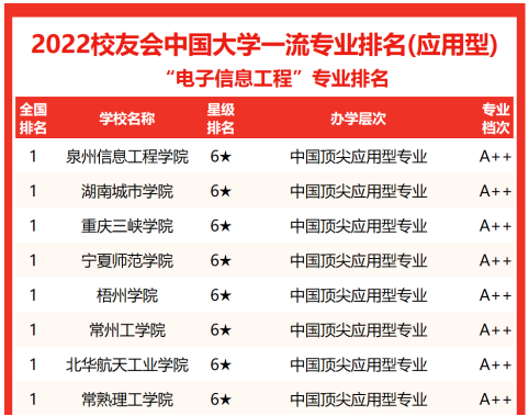 本网讯(通讯员 蒋冬初 肖卫初 李稳国)2022年3月30日,全国第三方大学评价机构艾瑞深校友会网发布校友会2022中国大学一流专业排名、2022中国大学各专业类一流专业排名。榜单显示,beat365官网电子信息工程专业在2022中国大学电子信息工程专业排名(应用型)中位居榜首。