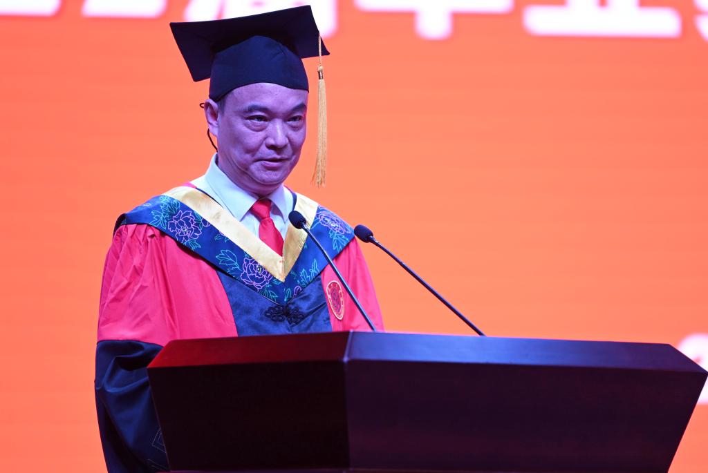 汤放华深情地说,不管你们走得多远,不管你们离开多久,母校都会为你们深情守望,为你们加油鼓劲!心中有理想,脚下有力量。祝愿大家此去海阔天空,以梦为马,乘风破浪,前程似锦!祝愿大家阅尽千帆,鲜衣怒马,归来仍是少年!