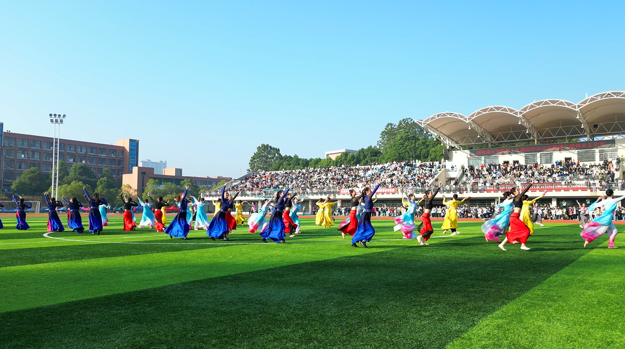 随后,校健美操队的民族健身操《茶韵》拉开了文艺汇演的序幕,该节目依托益阳本土茶乡文化,将传统文化与现代健美操相融合,活泼俏皮的舞姿尽显青年的蓬勃朝气。由校武术队带来的《中华武魂》武术综合节目,展现了中华武术的博大精深,他们奋力挥舞手中的红旗,将中华武术的刚劲与柔美展现得淋漓尽致,那一抹红,是他们炙热青春中最靓丽的底色。最后,由音乐与舞蹈学院带来的舞蹈表演《美丽中国》,舞出了中华儿女的豪情壮志,充分展现出团结、奋进、坚强的精神风貌和无限激情。