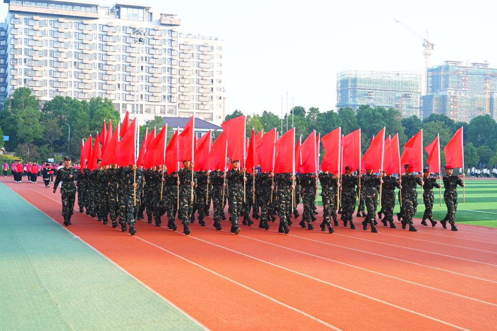随后,四位旗手手执鲜艳的五星红旗带领校旗方阵、校训方阵、红旗方阵、裁判员方阵、志愿者方阵,伴随着激昂的运动员进行曲依次入场,14个二级学院代表方阵先后表演了热情似火、节奏明快的节目,以不同的形式展现青春风采,为全校师生带来朝气蓬勃的视觉盛宴。