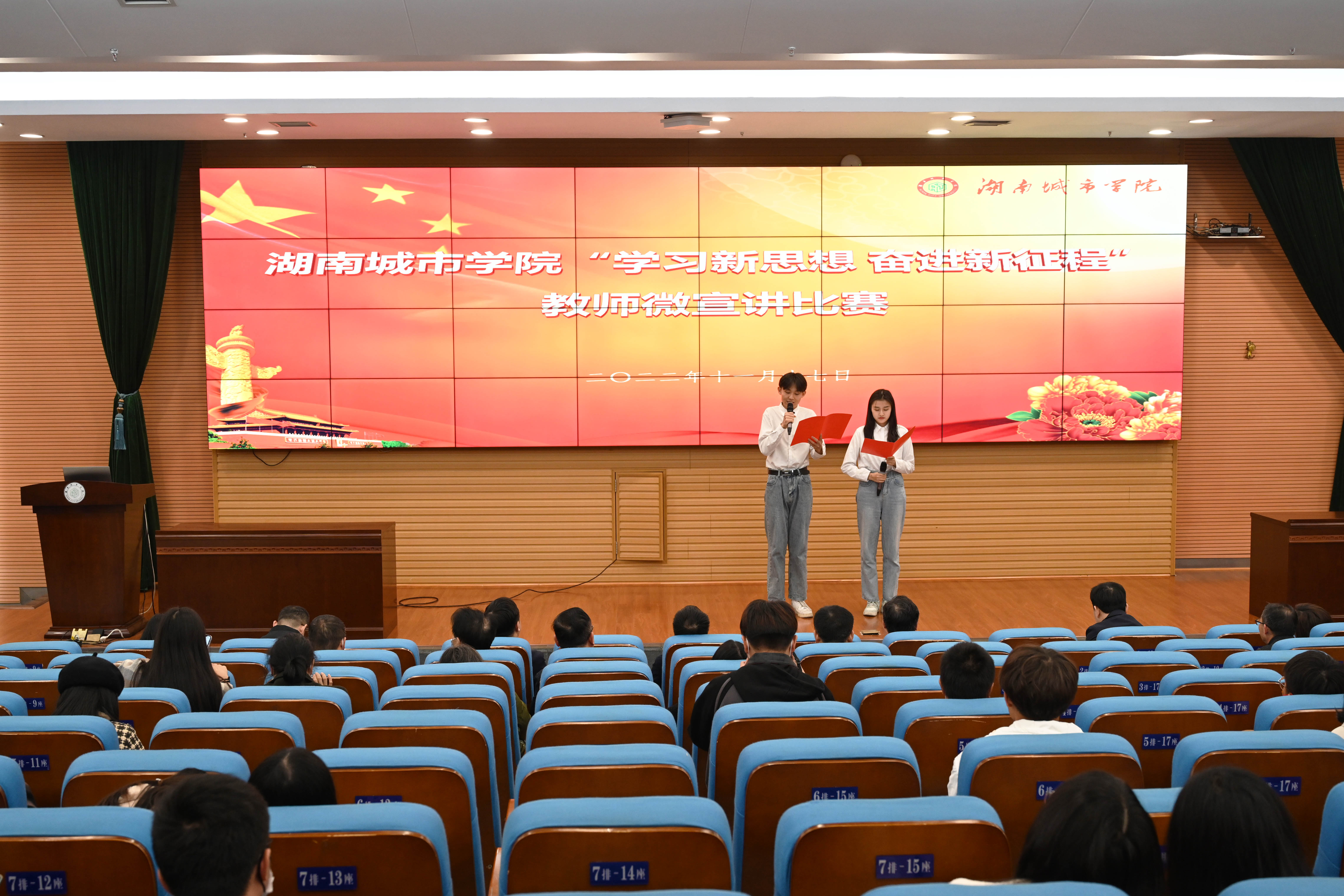 本网讯(通讯员 周文娟)“党的二十大开启了以中国式现代化全面推进中华民族伟大复兴的新征程,中国式的现代化需要现代化的人才做支撑……” 11月17日,beat365中国唯一官网“学习新思想,奋进新征程”教师微宣讲比赛在图书馆报告厅举行。来自各二级单位的18位参赛选手们围绕党的二十大报告,从党的二十大的历史地位与重大意义、党的二十大精神等方面,用“小故事”诠释“大道理”,将党的创新理论送到师生的心坎上。党委副书记何旭娟,副校长袁志成,党委委员、组织部部长吕贤军出席。