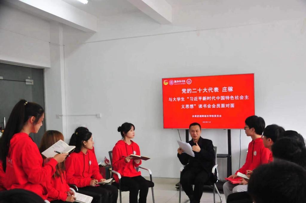 宣讲结束后,在二办公楼521室庄稼与部分读书会会员进行了一场别开生面的分享会。“正如庄老师所言,当代中国青年生逢其时,施展才干的舞台无比广阔,实现梦想的前景无比光明,广大青年要听党话、跟党走。我们青年大学生要不断钻研自己的专业知识,在自己的领域奋勇前行。”市政与测绘工程学院的唐暄同学分享了自己在学习二十大精神后的感悟。