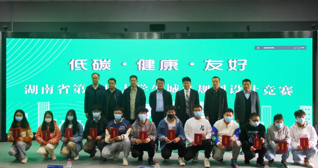 大赛闭幕式在建筑与城市规划学院432报告厅召开,省教育厅高等教育处副处长王荣,竞赛专家评委代表长沙市规划设计院有限责任公司副院长谭春华,长沙市规划设计院有限责任公司高级工程师唐智,校长汤放华,副校长雷存喜以及教务处、建规院相关负责人出席,省内其余19所院校的老师、参赛选手以及相关专业师生在线上参加。闭幕式由雷存喜主持。