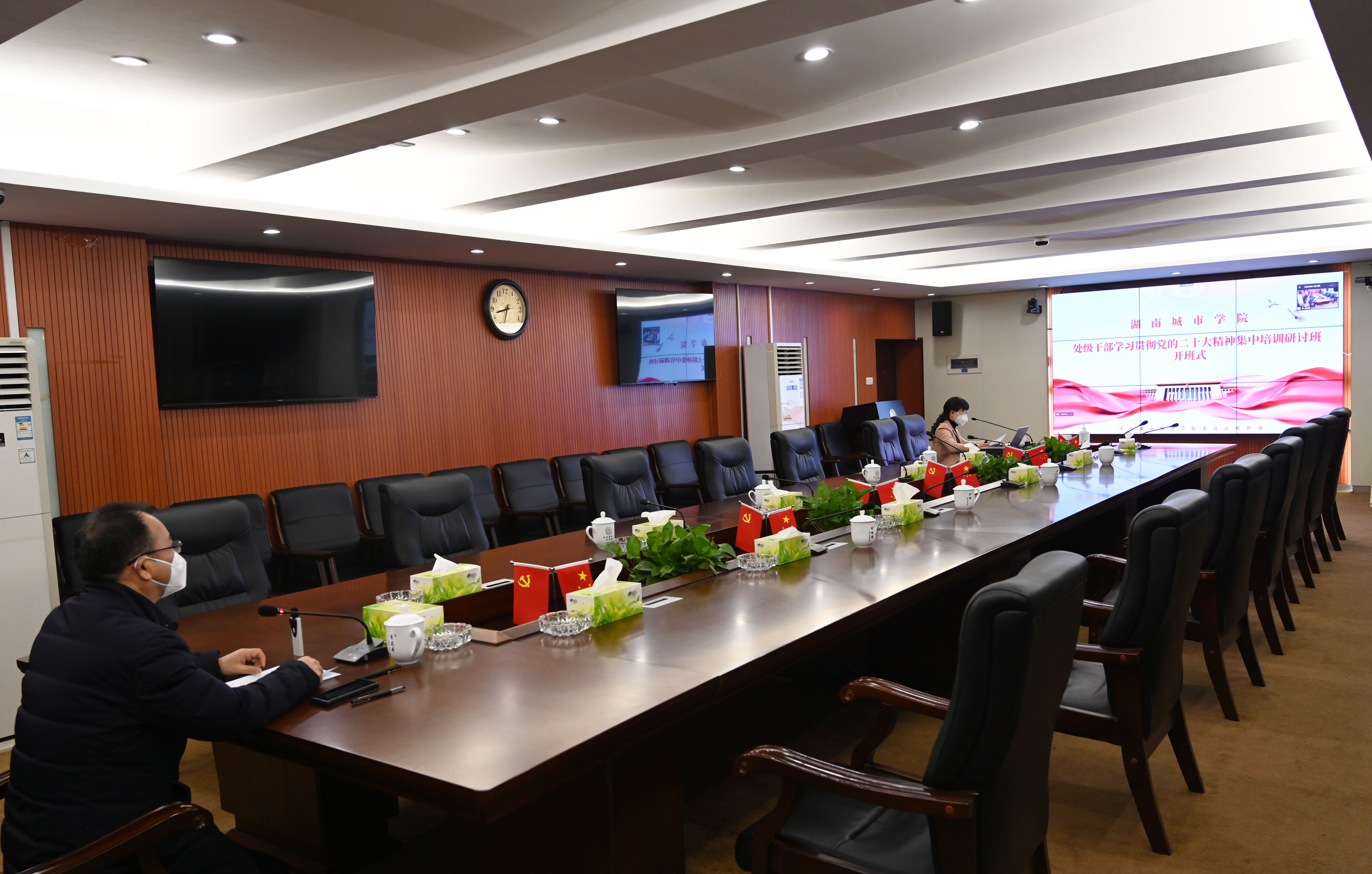 本网讯(通讯员 冷红)为深入学习宣传贯彻党的二十大精神,切实推动党的二十大精神入脑入心、见行见效,2022年12月27日,beat365官网处级干部学习贯彻党的二十大精神培训班开班仪式举行,开班仪式采用线上线下、主会场分会场相结合的方式进行。党委书记李建奇作动员讲话,校长汤放华作专题报告,全体校领导、全体处级干部参加。开班仪式由学校党委副书记何旭娟主持。