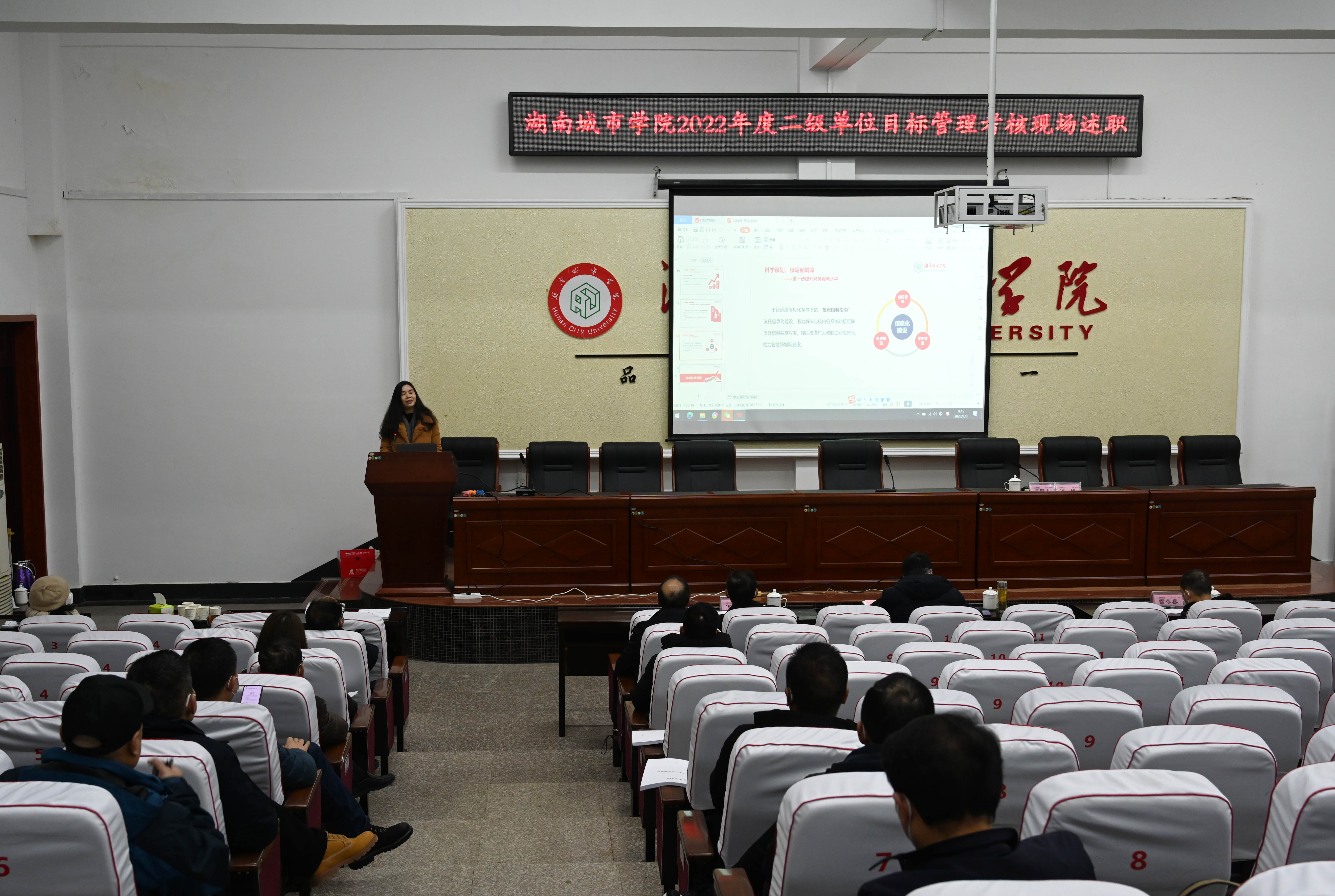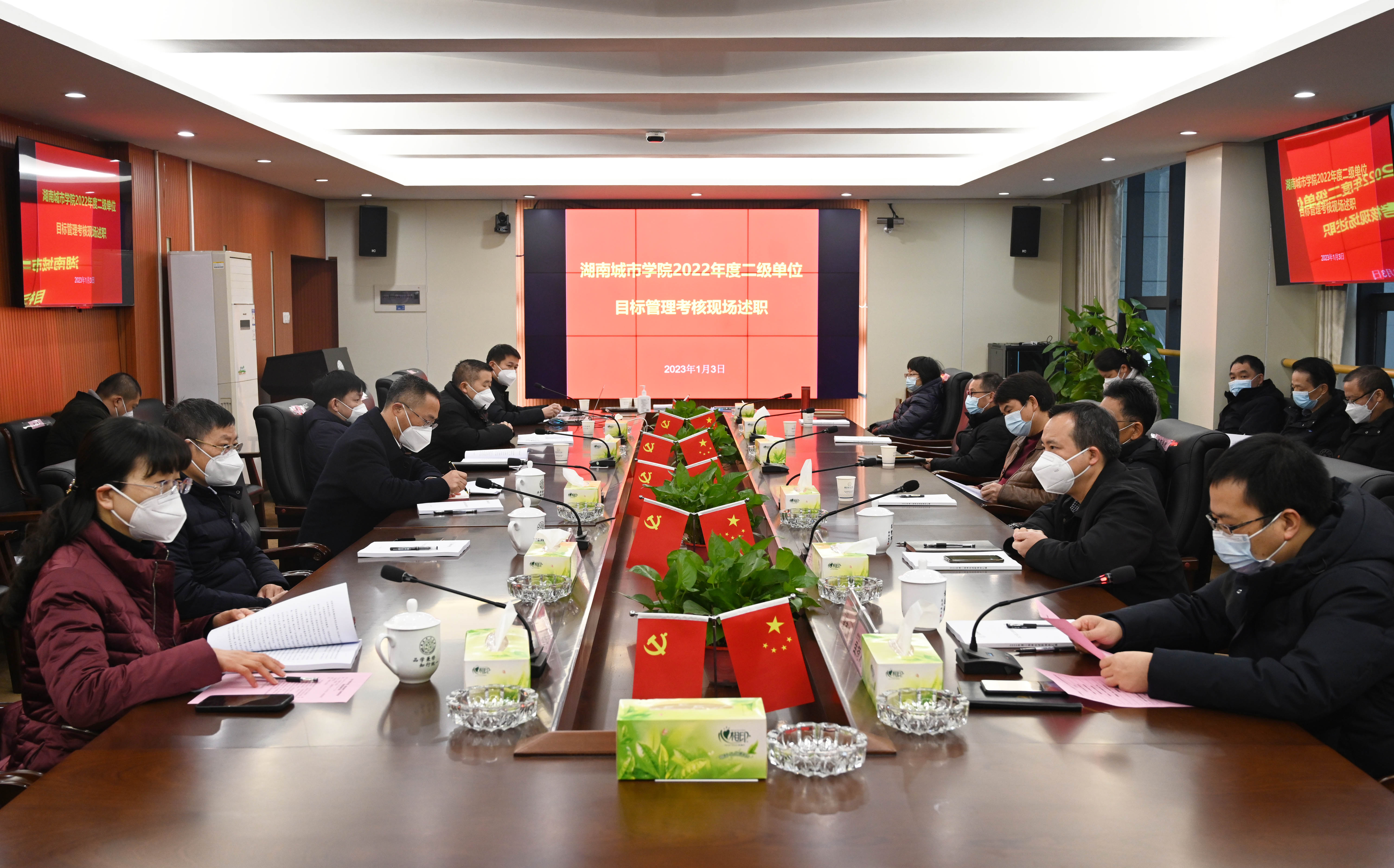 会上,61名(人次)中层正职干部分别汇报了本单位2022年在党建、意识形态工作、人才培养、教学科研、管理服务、师德师风建设以及硕士点建设等方面取得的成绩和存在的不足,重点汇报了“十四五”规划、双一流建设等方面做出的突出成绩以及核心指标完成情况,畅谈了2023年工作思路。