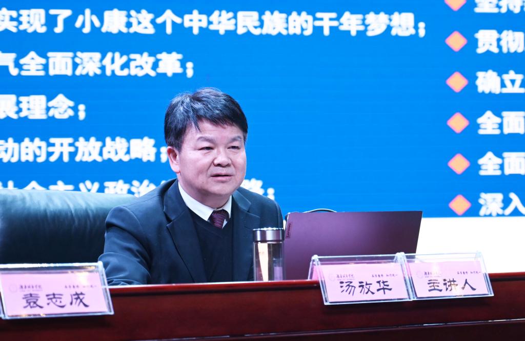 “汤书记的讲课让我全面了解了中国这些年来取得的辉煌成就,也让我深刻领悟到了青年的成长关乎国家的未来和民族的兴亡。听完后备受鼓舞、精神振奋。”来自管理学院工商管理专业的刘欣敏表示,将不惧风雨、不畏艰险,只争朝夕、不负韶华,让青春在祖国和人民最需要的地方绽放绚丽之花。