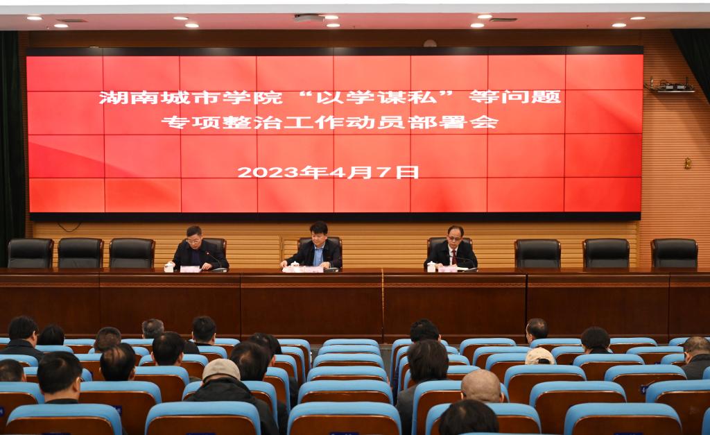 本网讯(供稿:纪委办)4月7日,学校在图书馆报告厅召开“以学谋私”问题等专项整治工作动员部署暨推进会。党委书记汤放华出席会议并讲话,在家的校领导、中层干部及纪检监察机构全体人员参加会议。