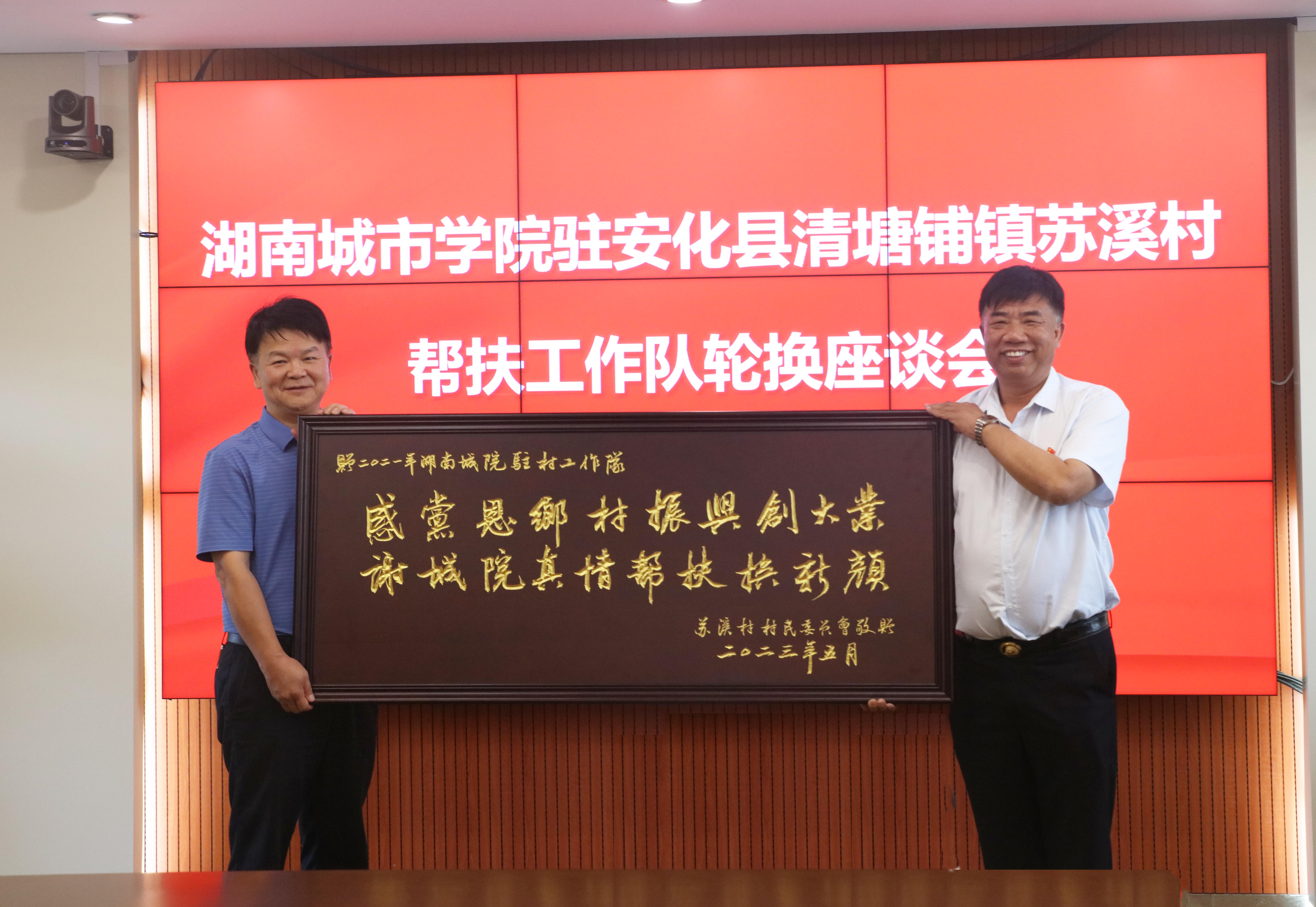 随后,邹文辉、毛关达分别代表苏溪村支两委和村民向学校和乡村振兴工作队捐赠了牌匾。