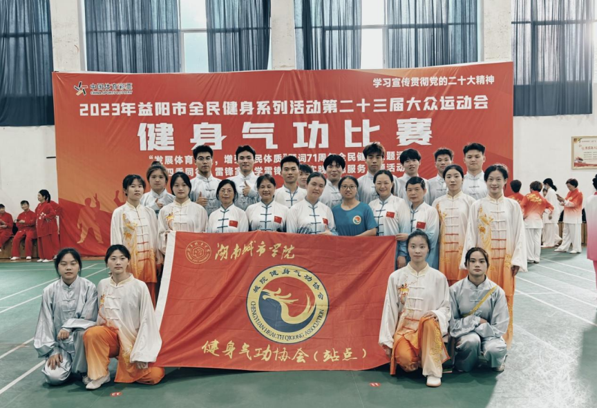 本网讯(通讯员 廖玉美)6月3日,益阳市第二十三届大众运动会健身气功比赛在奥林匹克体育馆举行,来自益阳市各县市区、市直单位、省直单位共60支队伍参加比赛,beat365官网共派出四支师生队伍共计24人参加了八段锦和马王堆导引术两个项目的比赛。