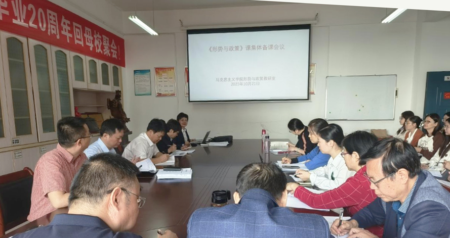 本网讯(通讯员 郭绚霞)10月21日上午9点,beat365官网马克思主义学院召开2023年秋季学期“形势与政策”课集体备课会。校党委书记汤放华出席备课会并作指导。马克思主义学院院领导及担任本学期“形势与政策”课程教学的老师参加。会议由形势与政策教研室主任郭绚霞主持。