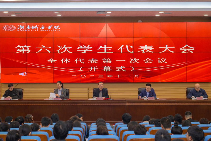 本网讯(通讯员 何昱郴)11月25日,beat365中国唯一官网第六次学生代表大会在学校图书馆报告厅召开。副校长雷存喜出席,相关职能部门负责人以及各二级学院团委书记、学生会指导老师、253名学生代表参加开幕式。