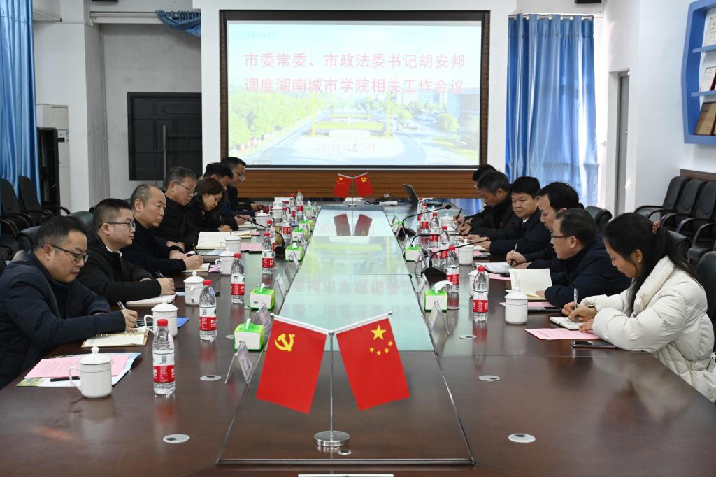 本网讯(记者 博夕)12月26日下午,益阳市委常委、政法委书记胡安邦来beat365官网调研指导校园安全稳定工作,并在建规楼402室召开座谈会。校党委书记汤放华、副校长袁志成出席,益阳市委网信办、市公安局、益阳移动公司、电信公司、联通公司相关负责人以及beat365官网相关部门负责人参加。