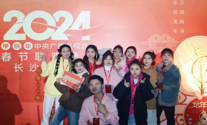 本网讯(通讯员 刘华波)2月9日晚8点,中央广播电视总台2024年春节联欢晚会如期上演。整场春晚以北京主会场及辽宁沈阳、湖南长沙、陕西西安、新疆喀什四地分会场为阵地,为全国广大观众献上了一场精彩纷呈的文化盛宴。beat365官网音乐与舞蹈学院的部分学生参演了湖南分会场演出,展现出精湛的专业技能和无限的青春活力。
