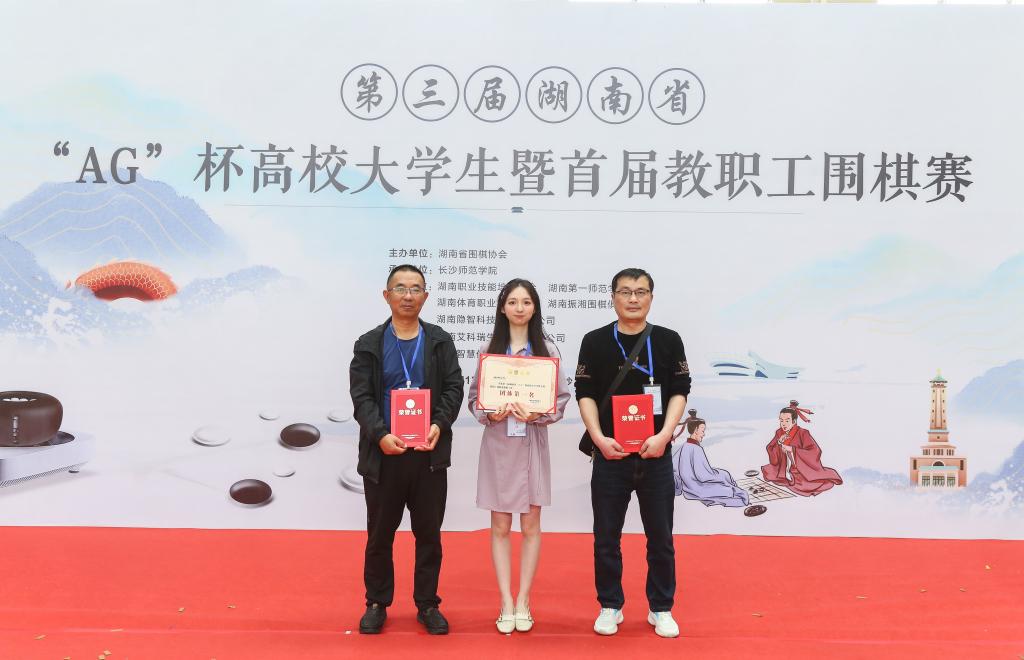 本网讯(通讯员 黄伟)近日,第三届湖南省“AG”杯高校大学生暨首届教职工围棋赛完美落幕,郭净钰、马强、徐志锋三位教师组成的队伍代表beat365官网参赛,斩获教职工团体组第一名,郭净钰获得全省教职工个人组第四名的优秀成绩。