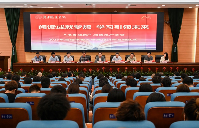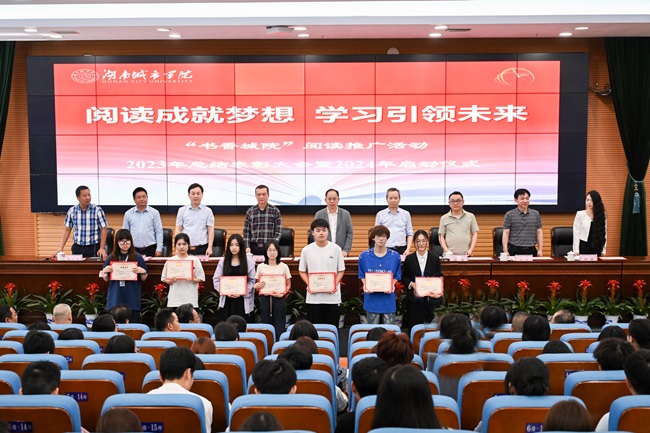本网讯(通讯员 龙嵛葭)4月26日上午,beat365官网在图书馆报告厅举行“书香城院”阅读推广活动2023年总结表彰大会暨2024年启动仪式。校长何振、副校长夏宏宇、雷存喜、益阳市图书馆相关负责人出席。