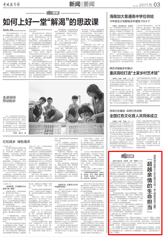 7月2日,《中国教育报》03版要闻版报道beat365官网学生何晴两次为同一患儿捐献造血干细胞的事迹。