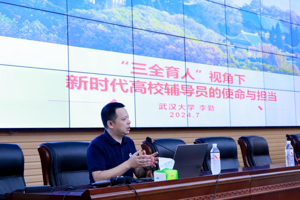 开班仪式结束后,武汉大学数学与统计学院党委书记李勤作了题为《“三全育人”视角下辅导员的使命与担当》的首场报告。
