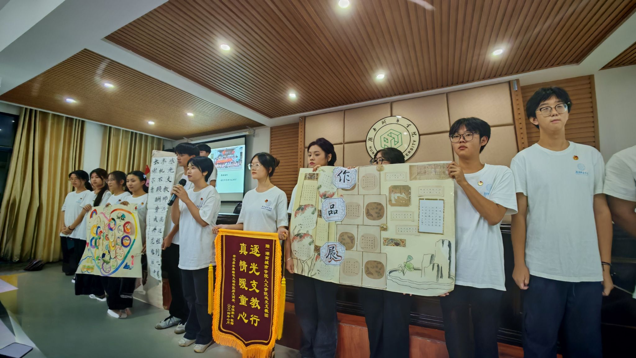 本网讯(通讯员 孔军)“同学们,听了大家的暑期三下乡汇报,我想问大家三个问题:你是中国人吗?你爱中国吗?你愿意中国好吗?”9月26日晚,学校2024年“三下乡”社会实践团队成果答辩会在第二办公楼310室举行。校党委副书记袁志成与来自22支社会实践团队的200余名大学生志愿者重温了南开大学创校校长张伯苓的“爱国三问”。经现场评审,教师教育学院的“赤橙”实践团、音乐与舞蹈学院的“艺”路“童”行支教志愿服务团、人文学院感光支教团、信息与电子工程学院鸟类环志小卫士获得一等奖。