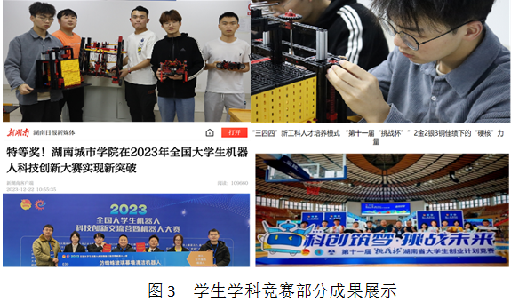 学院构建“334”创新创业教学体系和以能力培养为主线的“147”实践教学体系。在学校的统筹安排下,学院依托省重点实验室平台和科研项目带动学生夯实专业基础、提高教研等能力,推动实践教学走深走实;组织教师指导学生参加各种竞赛活动,提高学生各项技能水平,培养学生团队协作能力。近五来,学生承担国家级大学生研究性与创新性科研项目4项,湖南省大学生创新性项目21项,荣获全国大学生机器人大赛特等奖、全国机械创新设计大赛一等奖等国家级、省部级学科竞赛奖项42项。