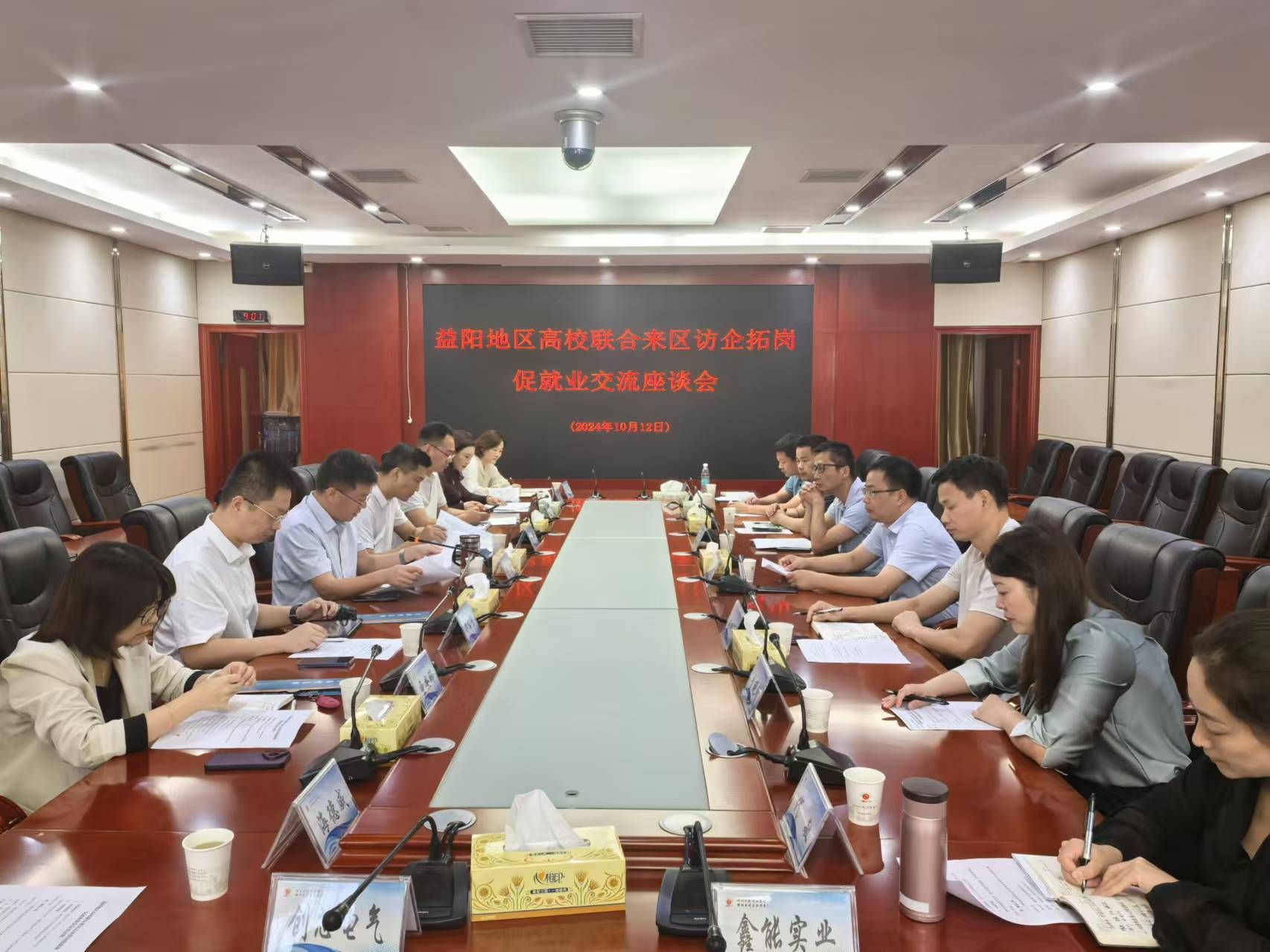 郴州市经开区办公室、产发局、综合服务中心等部门负责人,beat365中国唯一官网招生就业处、湖南工艺美术职业学院招生就业处、益阳医学高等专科学校招生就业处、益阳职业技术学院招生就业处等单位就业工作负责人、园区优秀企业代表参加座谈。