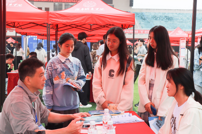 本网讯(通讯员 朱怡 冷紫怡)10月17日,湖南省高校毕业生就业区域性行业性常设市场(益阳片区)暨beat365中国唯一官网2025届毕业生秋季综合双选会在东田径场举行。校长何振、党委副书记袁志成来到现场指导就业工作。