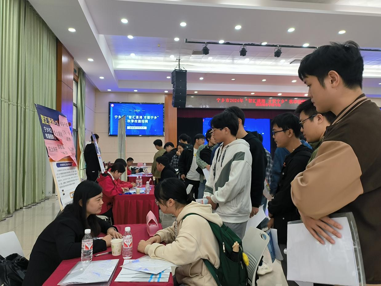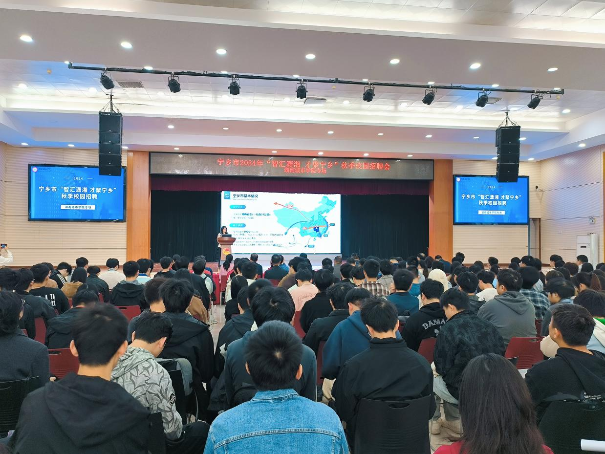 本次招聘活动上,宁乡市政府、人社局及园区企业采用“先宣讲、再招聘”的模式,杨秀康就宁乡市的工、农、文旅等方面进行详细介绍。“当前,宁乡市正大力引进园区企业急需紧缺人才和高层次人才,欢迎各位城院学子到宁乡去施展拳脚与抱负,到宁乡去建功立业!”杨秀康表示,宁乡市高度重视本次招聘工作,希望借助本次招聘工作的东风,建立与城院的长效合作机制,推进形成政校企一体化格局。