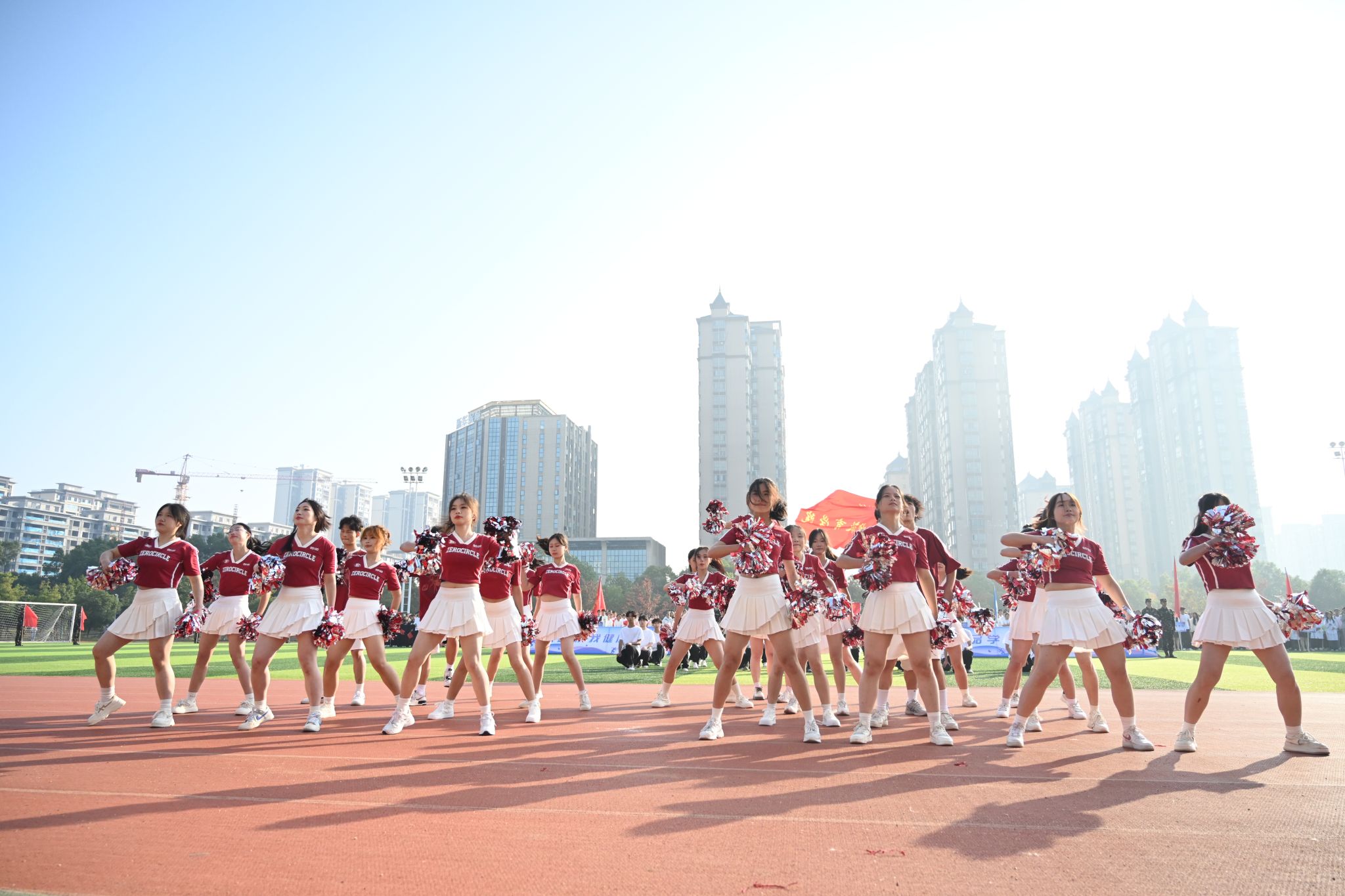 在入场式中,各二级学院运动员们还为现场观众献上了一场精彩纷呈的视觉盛宴。人文学院带来的舞蹈《华夏》惊艳了全场,当古老的编钟与现代音乐交织在一起,当传统的服饰与现代的舞步相互碰撞,如同历史的长河,流淌着岁月的痕迹。理学院带来的敦煌舞,舞者们好似从古老敦煌穿越而来,衣袂飘飘,彩带飞扬。她们用灵动身姿演绎着千年传奇,举手投足间尽显敦煌神韵。青春的活力与古老的文化完美交融,仿佛时光交错……
