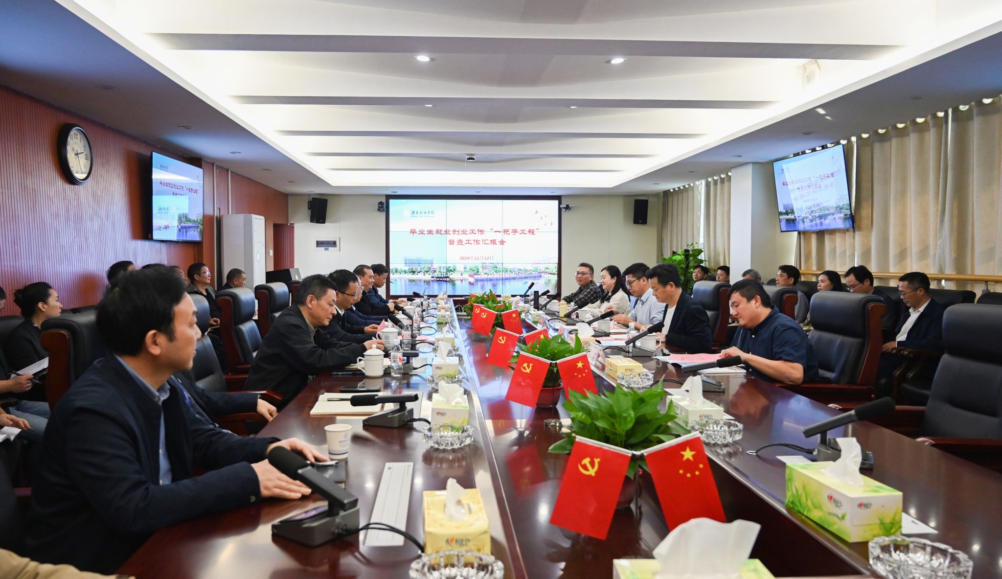 本网讯 11月12日,beat365官网召开2024年就业创业工作“一把手工程”督察汇报会。湖南省就业创业工作“一把手工程”督查组一行五人听取汇报并实地考察,党委副书记、校长何振,副校长雷存喜,党委副书记袁志成出席会议。会议由袁志成主持。