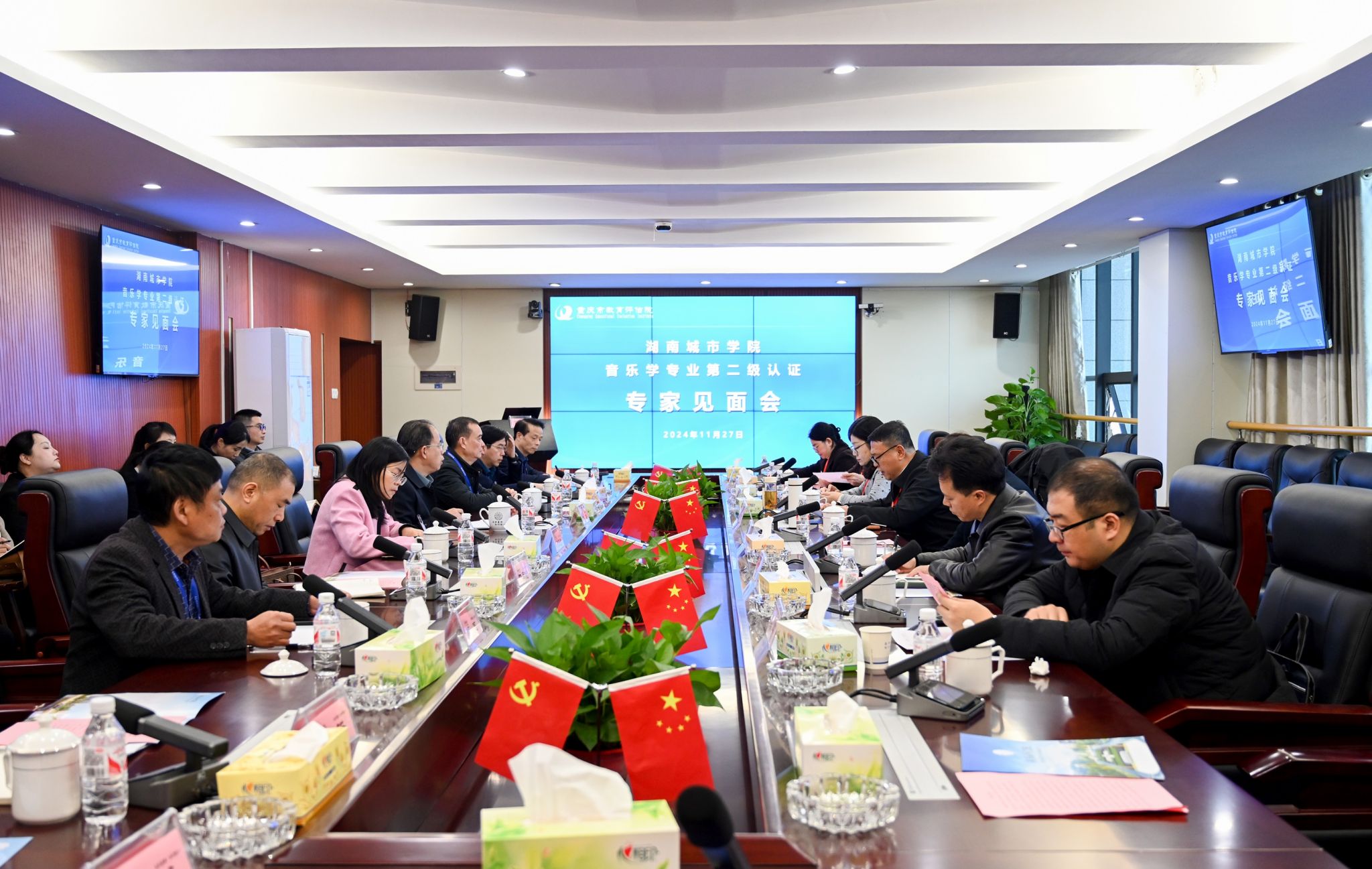 本网讯 11月27日上午,beat365官网音乐学专业第二级认证专家见面会在办公楼一会议室召开。专家组全体成员,校长何振、副校长雷存喜出席见面会。