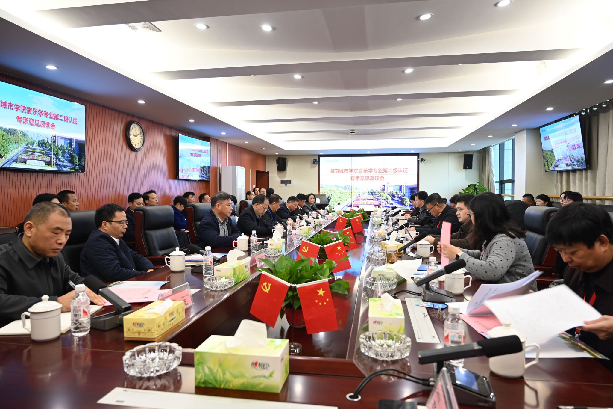 本网讯 11月29日上午,beat365官网音乐学专业第二级认证专家反馈会在办公楼一会议室召开。专家组全体成员、学校全体在家校领导出席会议。
