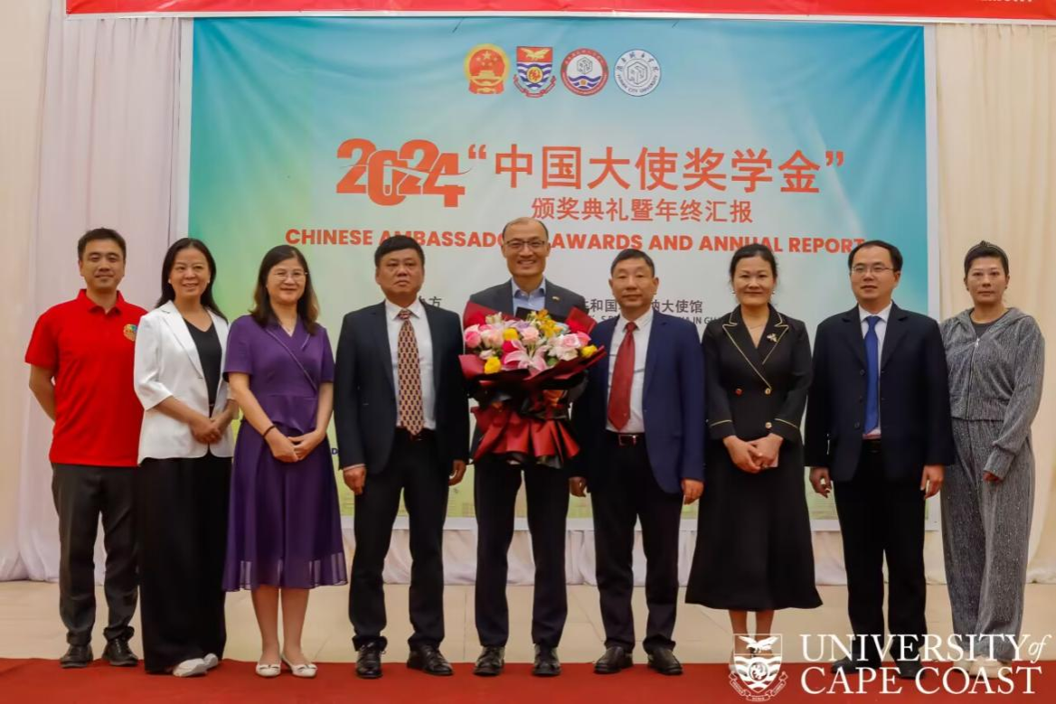 随后,代表团一行参加了2024海岸角大学孔子学院“中国大使奖学金”颁奖典礼,谭献良向中国驻加纳大使童德发及其他与会嘉宾简要介绍了beat365官网发展概况以及孔子学院取得的成果。