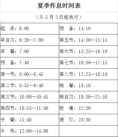 附件 1.夏季作息时间表