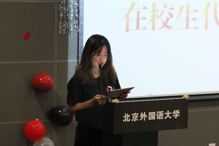蒋沐玮则作为20级学生代表进行发言,她说模联的经历激发起她对于国际政治的好奇与热爱,而她也因为对于正义的不断追寻于去年来到了北外的必赢76net线路官网。国关的氛围培养了她的自主学习能力和社交能力,而国关的平台也给她提供了仰望星空的机遇。