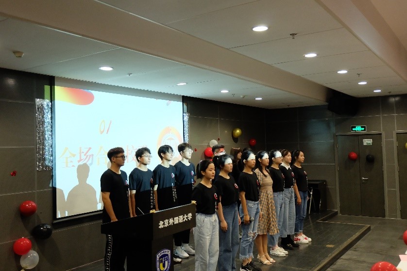 随后学院合唱团领唱,全体人员合唱北外校歌。 “人民需要我们到哪里,我们就到哪里”,嘹亮的歌声伴随着高昂的旋律在报告厅回荡。无论已经离开北外多久,距离北外多远,大家都不会忘记最初听到校歌时的震撼与感动,更不会忘记以实际行动践行这一光荣使命。