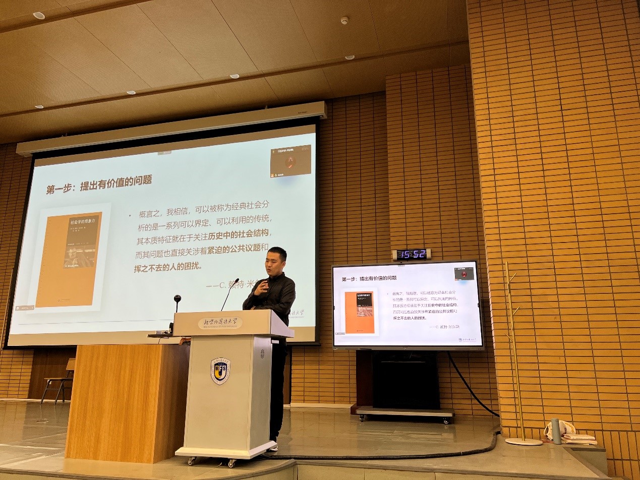 随后,必赢76net线路官网青年教师释启鹏博士以《问题意识与学术规范》为题进行了详细讲解。释启鹏老师围绕问题提出、文献对话、分析框架、研究方法等环节就论文写作中需要注意的问题以及常见错误进行了阐述,鼓励同学们在介入经典理论对话中为当下重大现实问题提供新的解释。