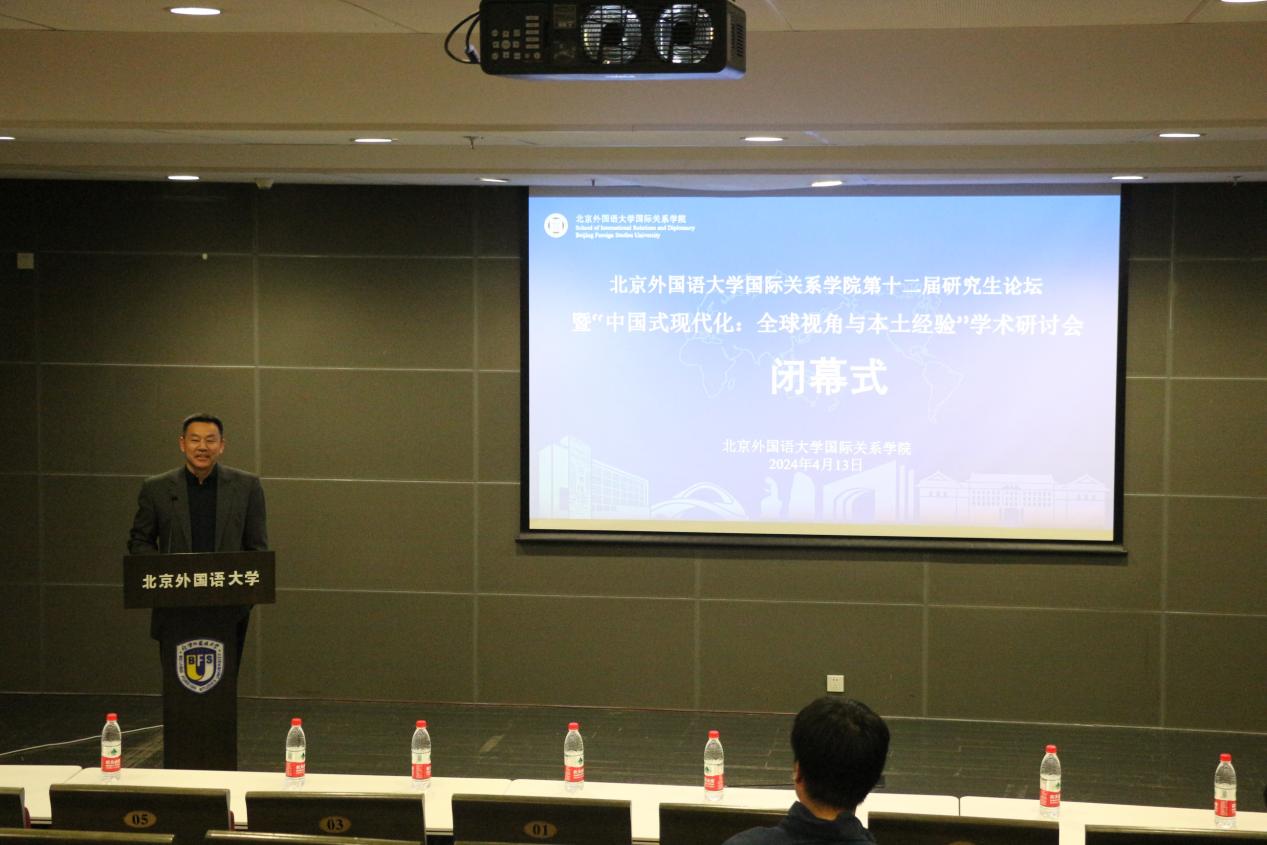 论坛闭幕式由彭澍主持,张效民书记总结。张效民指出,本次论坛彰显了青年人的家国情怀、国际视野以及对学术的执着追求。青年人承担着中华民族伟大复兴的光荣使命,要勇挑重担。青年人还要担当好党和国家对外工作的重要补位者、国家间关系牵线搭桥的先遣队、中国形象和中国故事的积极传播者、国家重大外交理念的青年实践者四重角色。
