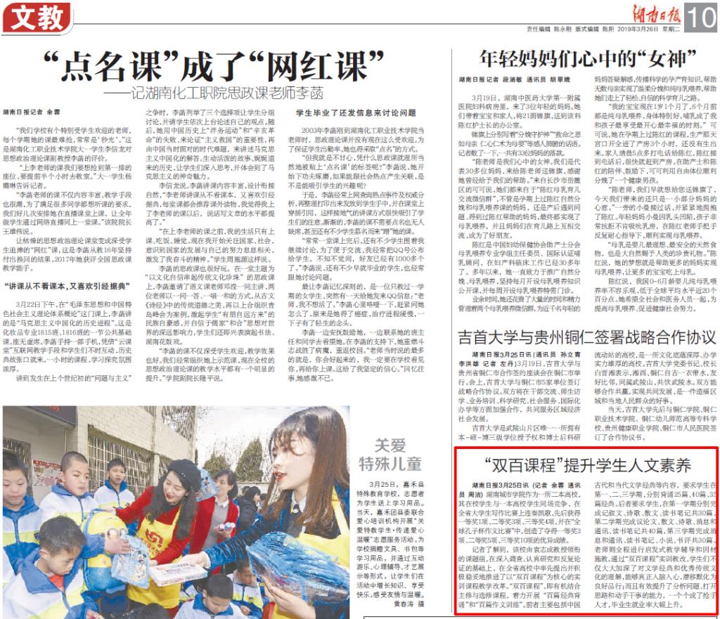 《湖南日报》3月26日第10版报道beat365官网推进以“双百课程”为核心的实训课程教学改革