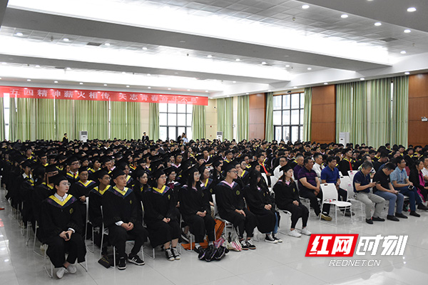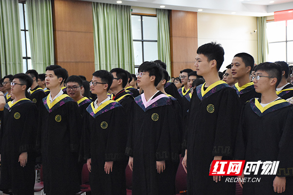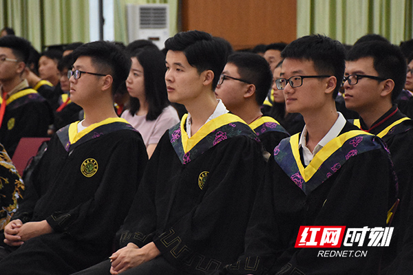 毕业生认真聆听校长赠言。