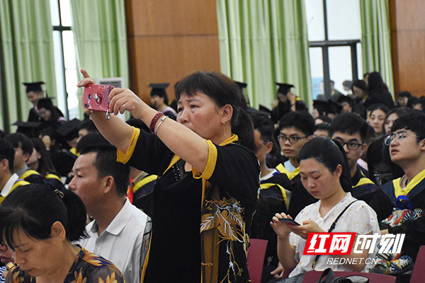 到场家长拿出手机记录下孩子的重要时刻。